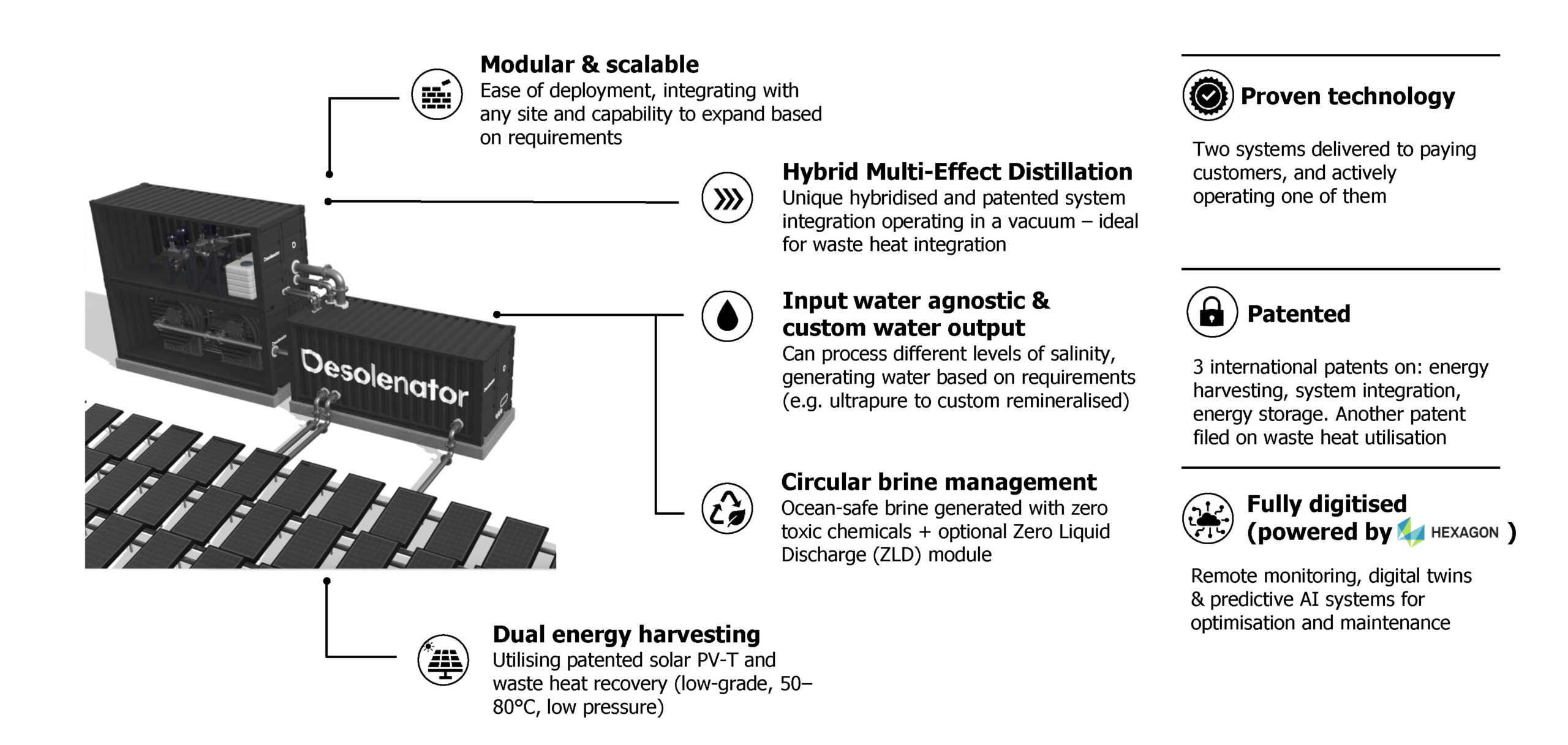Circular industrial desalination & cooling platform that produces up to 40m3/hr of ultrapure water